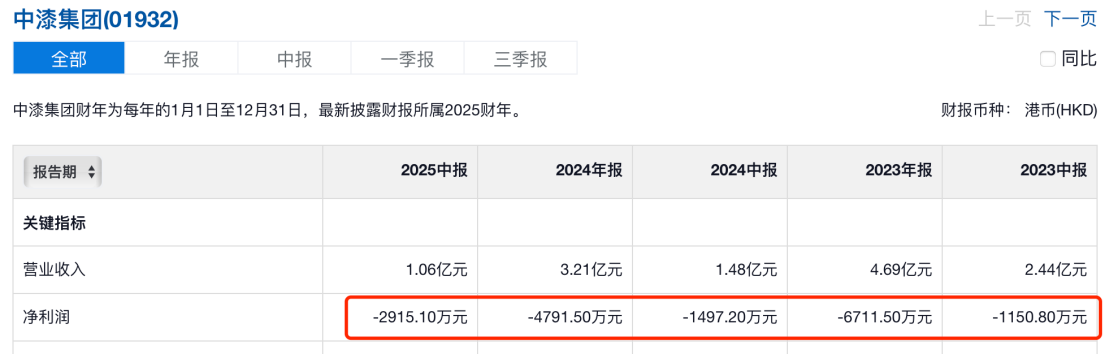 拉长本领线来看,历史数据表露,自2018年中报至最新发布的2025年中报,中期集团已纠合15期财报出现蚀本,蚀本总金额已逾越7亿元。